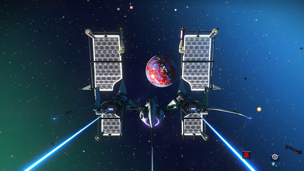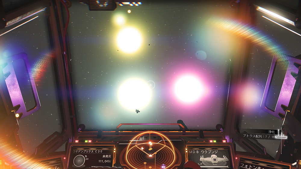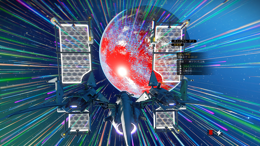 不時着した自分の宇宙船を修理し、別の星系へワープできるようになった段階で一気に世界が広がります(2重の意味で)。