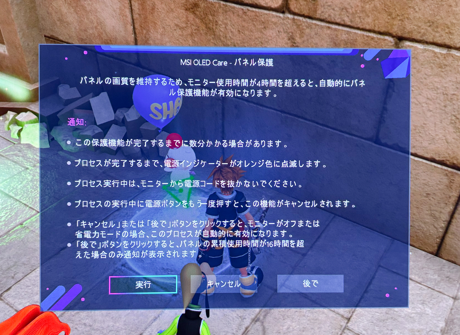 このモニターでは一定時間ごとにパネルリフレッシュのアラートが立ち上がります。